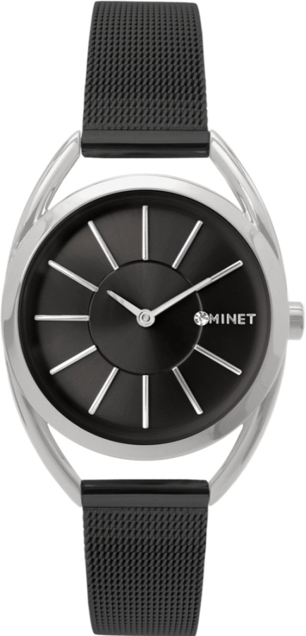 MINET MWL5098 - MINET Stříbrno-černé dámské hodinky ICON BLACK MESH
