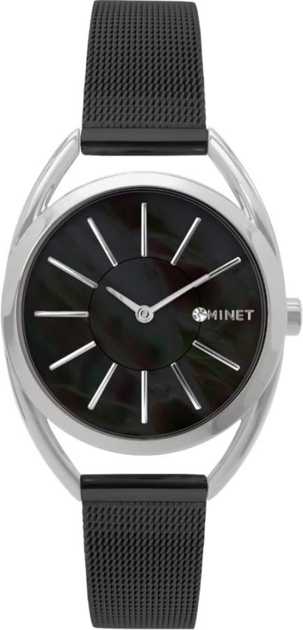 MINET MWL5211 - MINET Stříbrno-černé dámské hodinky ICON BLACK PEARL MESH