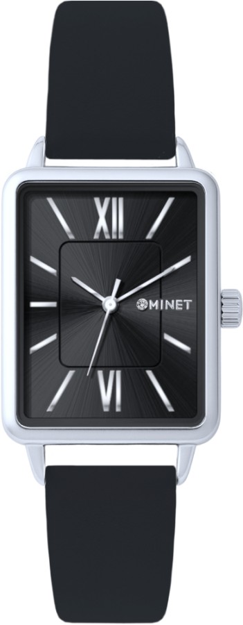 MINET Stříbrno-černé dámské hodinky SIENA s černým koženým řemínkem