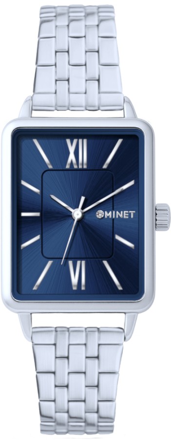 MINET Stříbrno-modré dámské hodinky SIENA se stříbrným ocelovým řemínkem