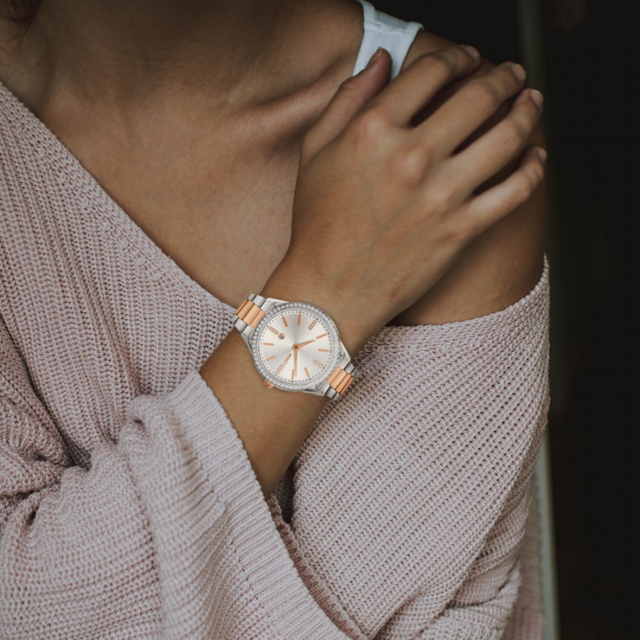 MINET Stříbrno-růžové dámské hodinky AVENUE