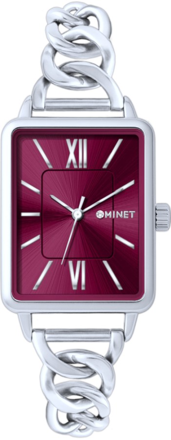 MINET Stříbrno-vínové dámské hodinky SIENA se stříbrným ocelovým řemínkem
