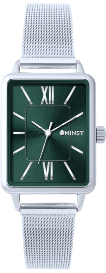 MINET Stříbrno-zelené dámské hodinky SIENA se stříbrným ocelovým řemínkem