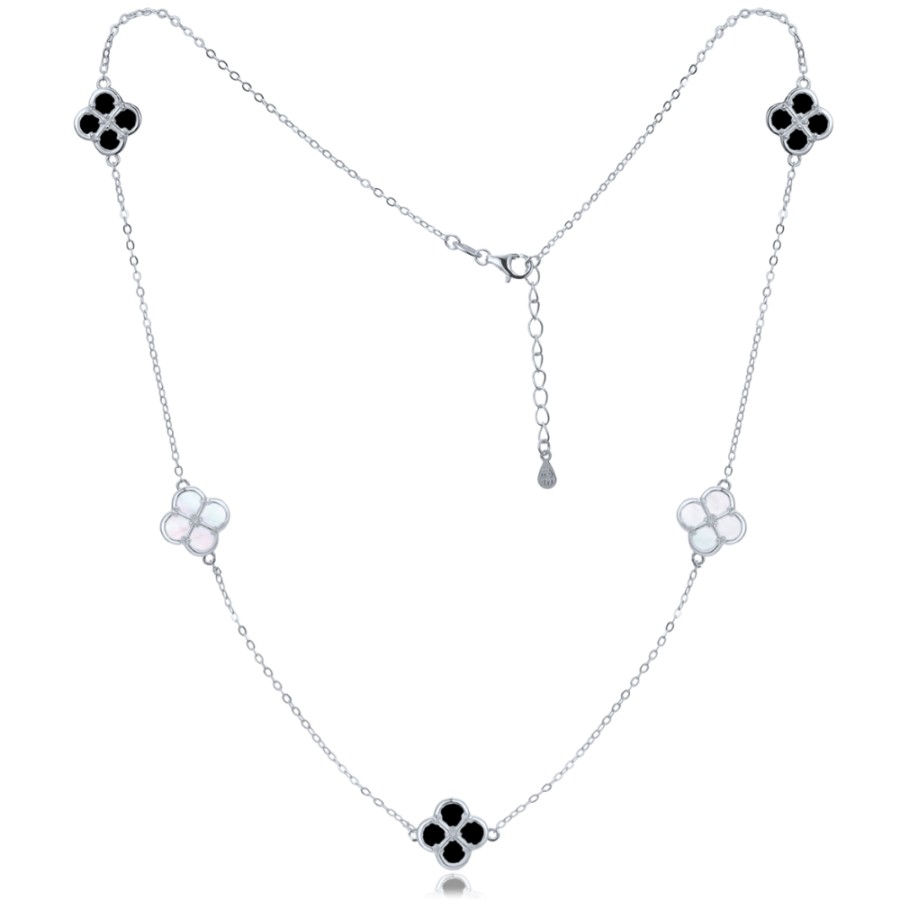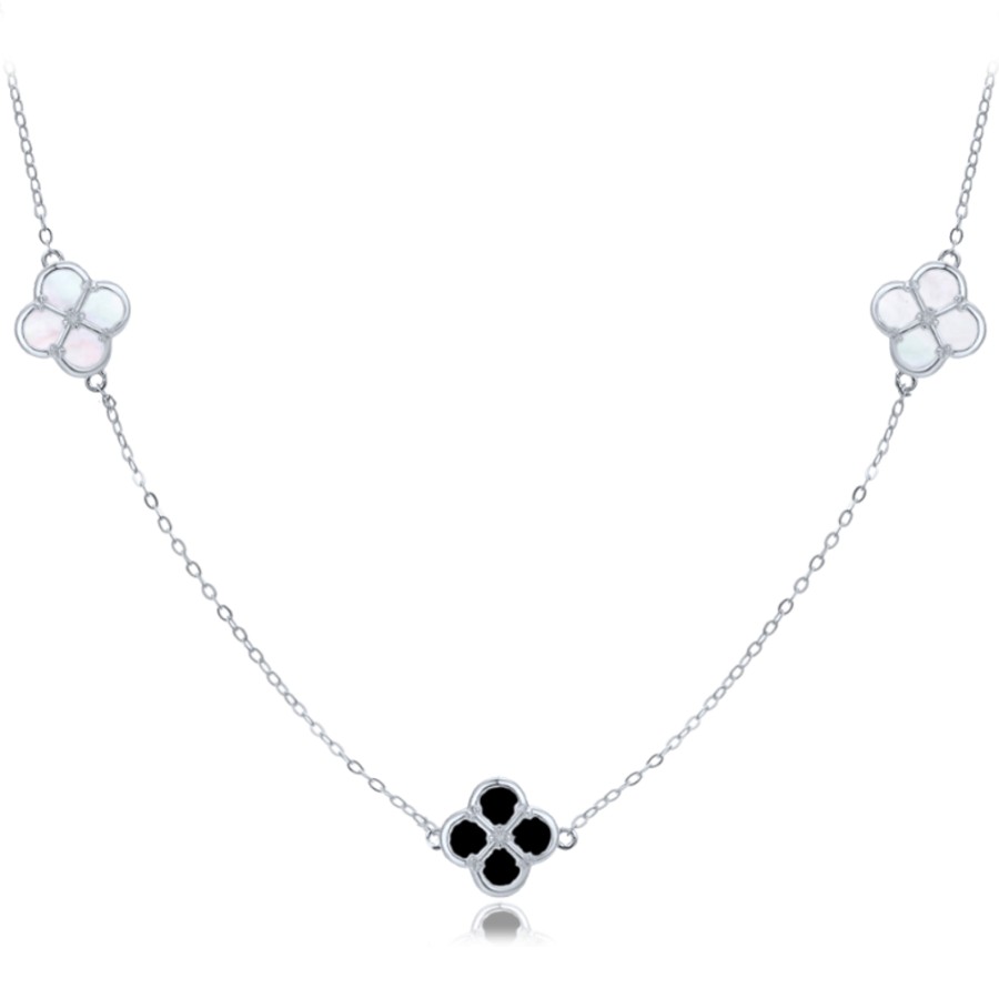 MINET JMAS7058CN50 - MINET Stříbrný náhrdelník čtyřlístky s bílou a černou perletí