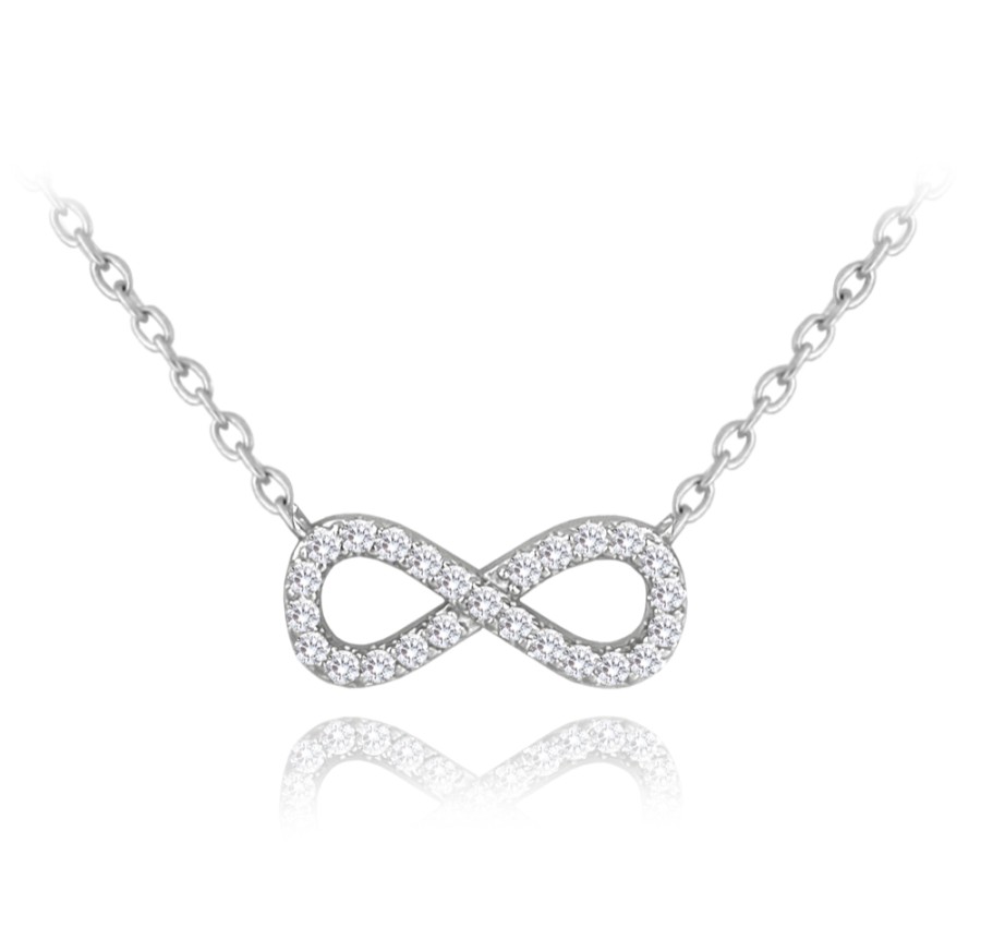 MINET Stříbrný náhrdelník NEKONEČNO s bílými zirkony