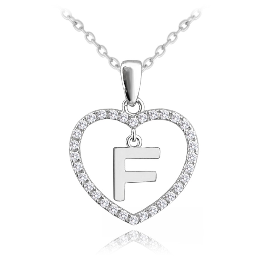 MINET Stříbrný náhrdelník písmeno v srdíčku "F" se zirkony
