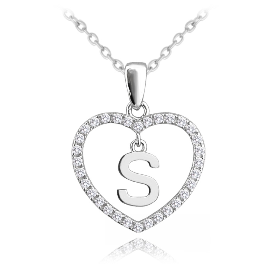 MINET Stříbrný náhrdelník písmeno v srdíčku "S" se zirkony