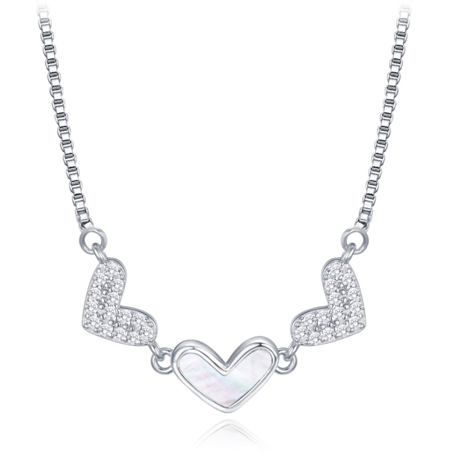 MINET JMAS0251SN45 - MINET Stříbrný náhrdelník srdíčka s bílými zirkony a s bílou perletí