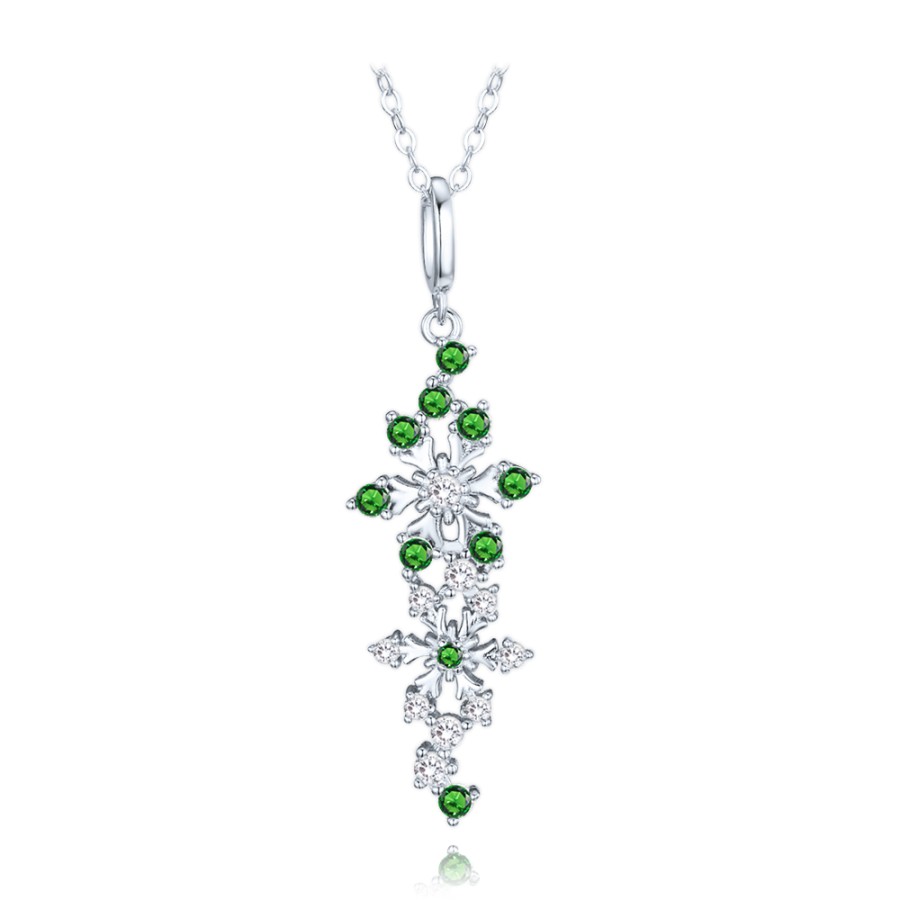 MINET Stříbrný náhrdelník vločky s bílými a zelenými zirkony