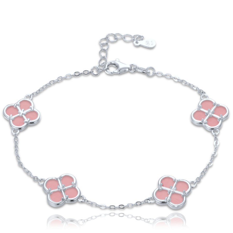 MINET JMAS7058RB20 - MINET Stříbrný náramek čtyřlístky s jadeity