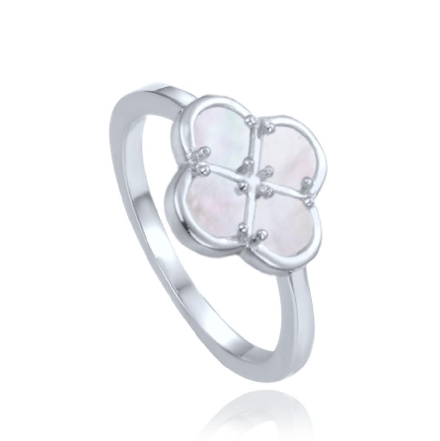 MINET Stříbrný prsten čtyřlístek s bílou perletí vel. 60