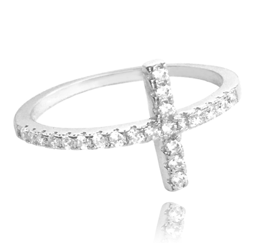 MINET Stříbrný prsten KŘÍŽEK s bílými zirkony vel. 50