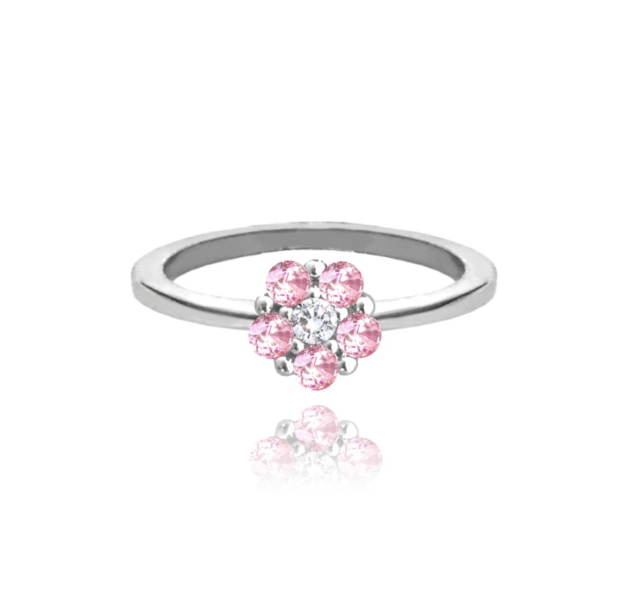MINET JMAD0037PR50 - MINET Stříbrný prsten KYTIČKA s růžovými zirkony vel. 50
