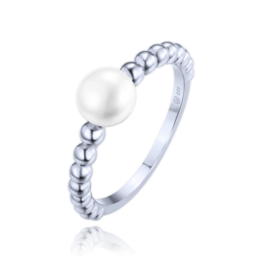 MINET Stříbrný prsten s perlou a kuličkami vel. 55