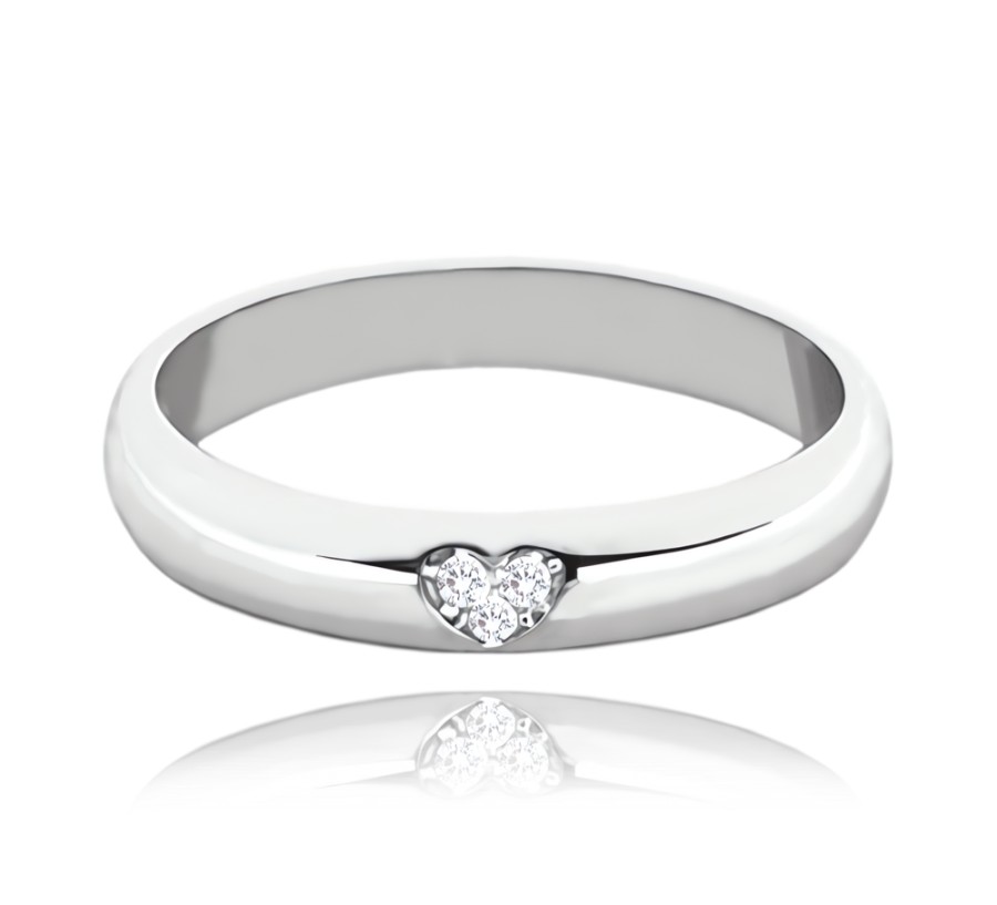 MINET+ Stříbrný snubní prsten se srdíčkem a bílými zirkony vel. 49
