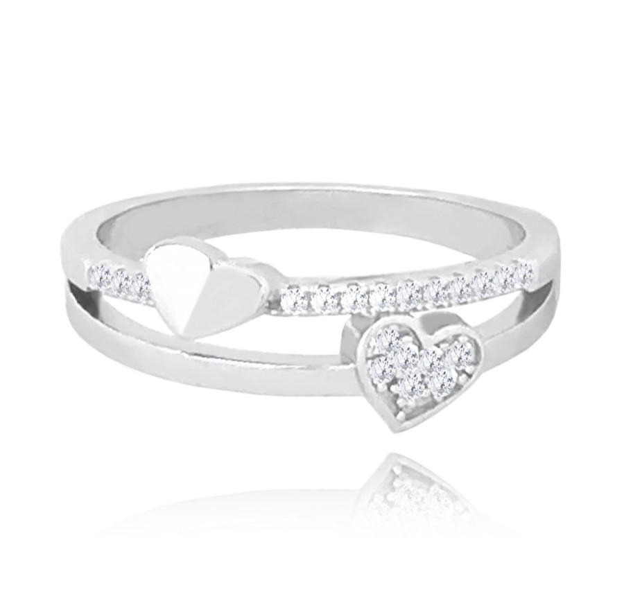MINET Stříbrný srdíčkový prsten LOVE se zirkony vel. 54