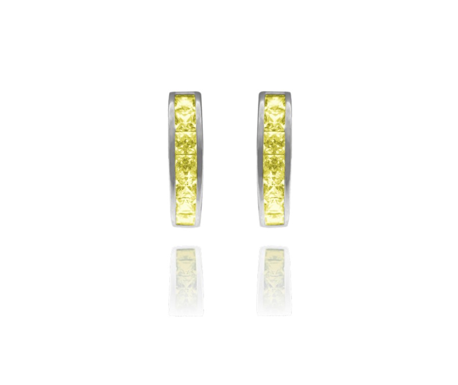 Žluté náušnice kroužky jsou díky praktickému zapínání a tvaru pohodlné pro každodenní nošení. Žluté zirkony se krásně třpytí a ozvláštníte jimi svůj outfit. Povrch stříbra je z rhodia, náušnice tedy neztratí svůj zářivý lesk a barvu.