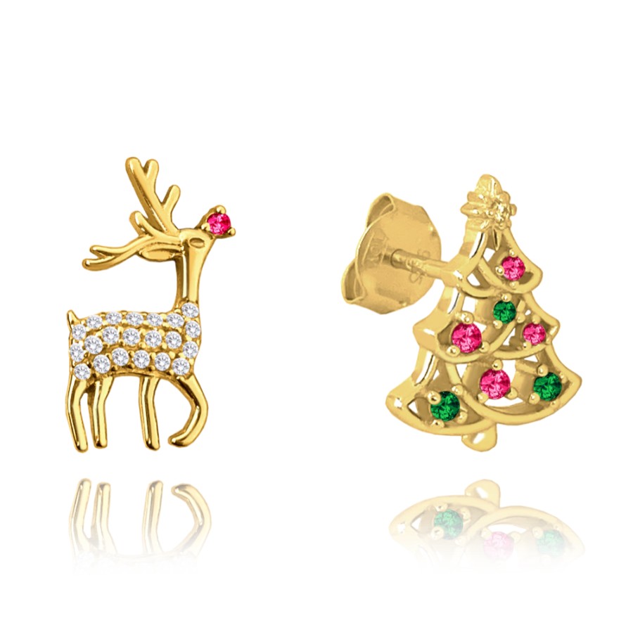 MINET JMAS8044GE00 - MINET Vánoční pozlacené stříbrné náušnice SOB a STROMEČEK