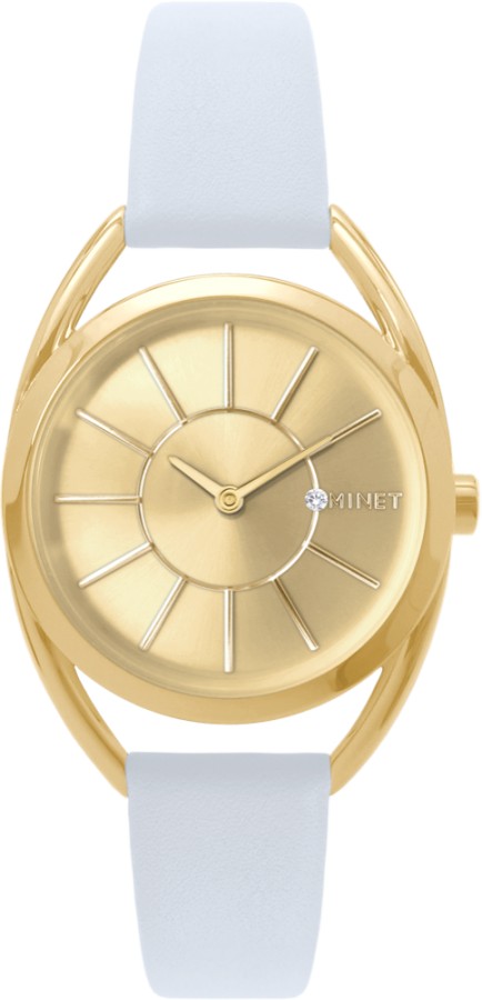 MINET MWL5251 - MINET Zlaté dámské hodinky ICON GOLD s bílým koženým řemínkem