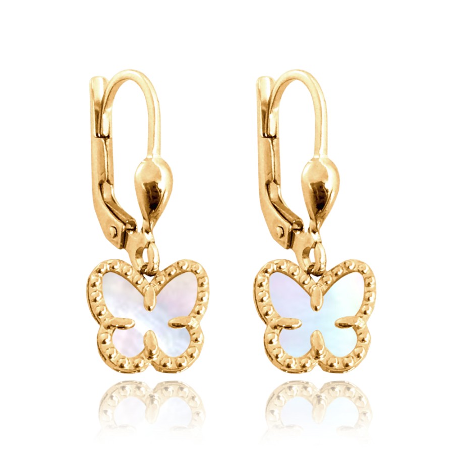 MINET JMG0155WGE00 - MINET Zlaté náušnice motýli s bílou perletí Au 585/1000 2,35g