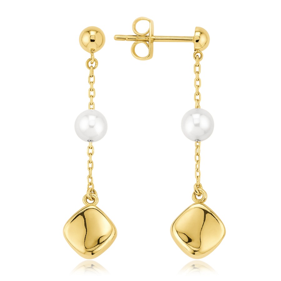 MINET Zlaté náušnice s řetízkem a perlou Au 585/1000 1,50g