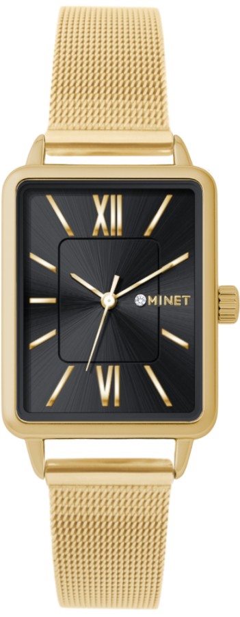 MINET Zlato-černé dámské hodinky SIENA se zlatým ocelovým řemínkem