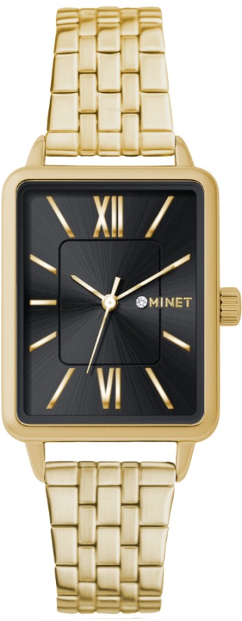 MINET Zlato-černé dámské hodinky SIENA se zlatým ocelovým řemínkem