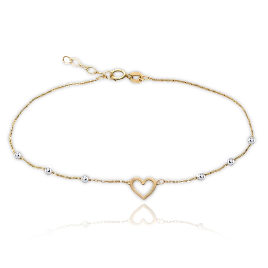 MINET JMG0183WBB18 - MINET Zlatý náramek srdíčko a kuličky v kombinaci bílého a žlutého zlata Au 585/1000 1,05g