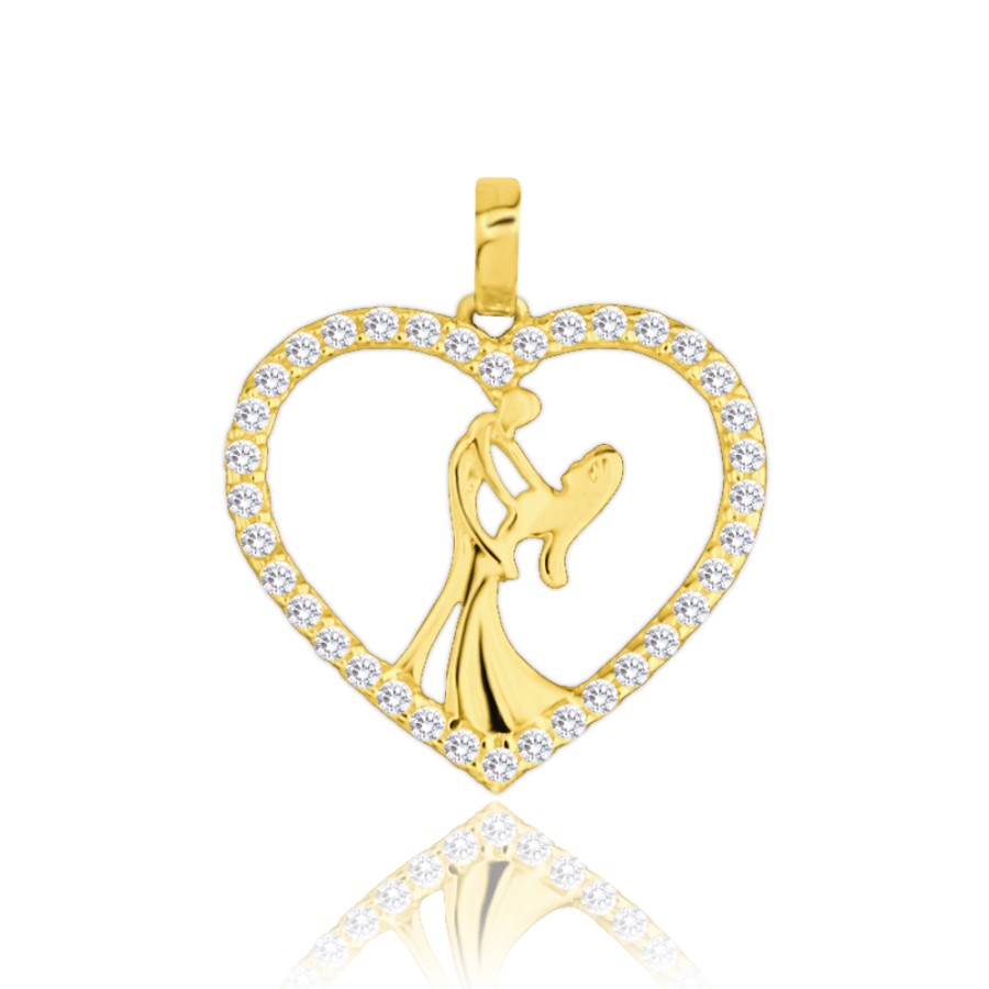 MINET Zlatý přívěs zamilovaný pár v srdci s bílými zirkony Au 585/1000 1,15g
