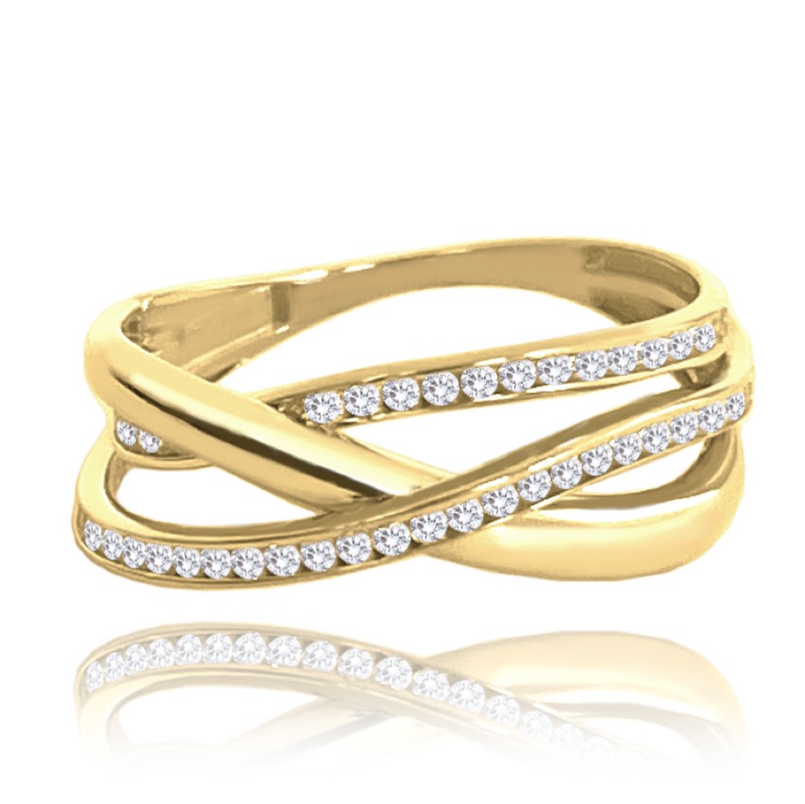 MINET Zlatý zapletený prsten s bílými zirkony Au 585/1000 vel. 60 - 3,00g