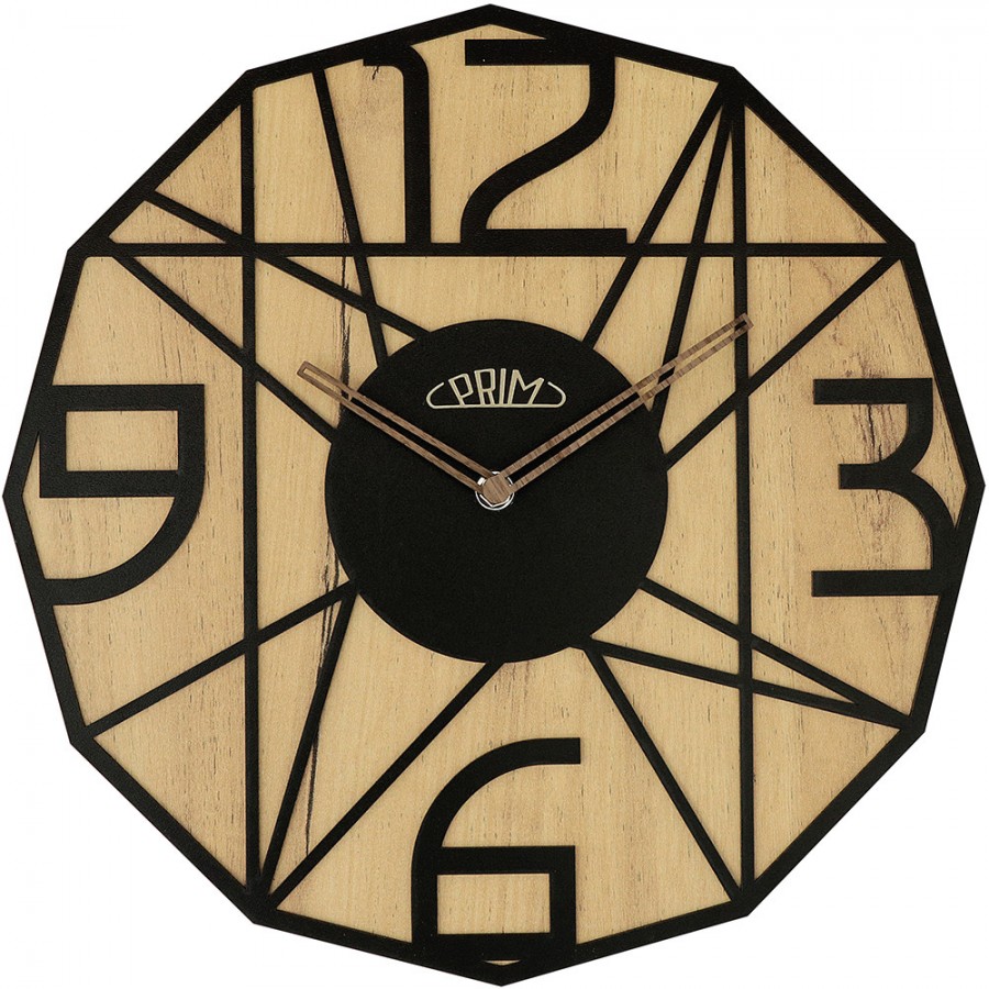 Nástěnné dřevěné hodiny PRIM Glamorous Design v netradičním tvaru. Výrazným prvkem jsou číslice v 3D provedení. Varianta 5390 má ručku z kvalitní dřevěné dýhy. Hodiny jsou vybaveny strojkem s plynulým chodem, u varianty 9000 jde o strojek krokový. Jsou zpracované z polotvrdé dřevovláknité desky (MDF). Tloušťka obou vrstev MDF je 6 mm (jedna vrstva 3 mm). Vyrobeny v ČR.