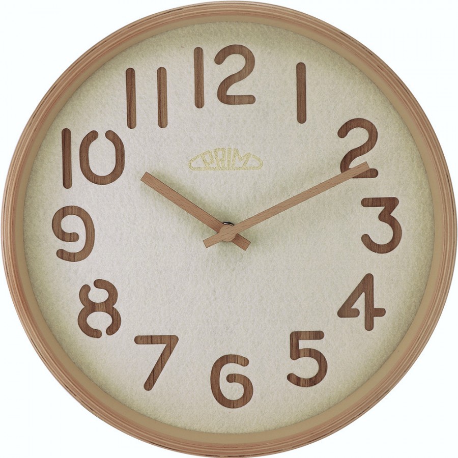 Nástěnné hodiny PRIM Organic Soft v dřevěném pouzdře a s vnitřní částí z jemného koberečku, který má v sobě netradičně vyražené číslice. Hodiny se skvěle hodí nejen do ložnice či pracovny, ale především pro ty co mají rádi kombinaci tkanin a přírodních materiálů. Díky plynulému chodu těchto uklidňujících hodin můžete nerušeně pracovat nebo odpočívat.