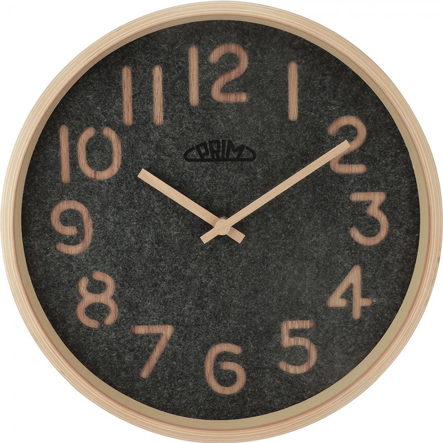 Nástěnné hodiny PRIM Organic Soft v dřevěném pouzdře a s vnitřní částí z jemného koberečku, který má v sobě netradičně vyražené číslice. Hodiny se skvěle hodí nejen do ložnice či pracovny, ale především pro ty co mají rádi kombinaci tkanin a přírodních materiálů. Díky plynulému chodu těchto uklidňujících hodin můžete nerušeně pracovat nebo odpočívat.