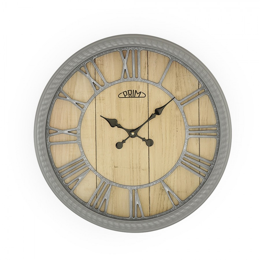 Nástěnné plastové hodiny PRIM Romanesque ve velikosti ∅ 557 mm budou výrazným prvkem ve vašem interiéru díky velkému číselníku ve vzoru dýhy. Hlavní dominantou těchto hodin jsou římské číslice s patinou v 3D provedení, které jsou spolu netradičně spojené.