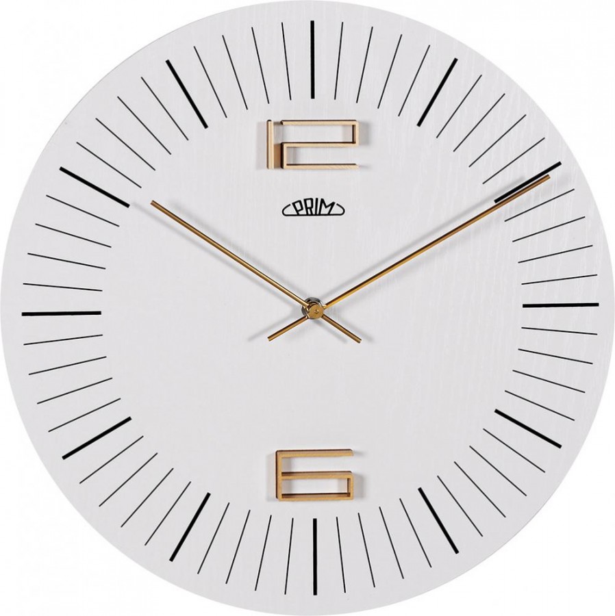 Dřevěné nástěnné hodiny PRIM Wood Thin mají 3D číslice 12 a 6 z kovu. Působí velice čistým, elegantním dojmem.