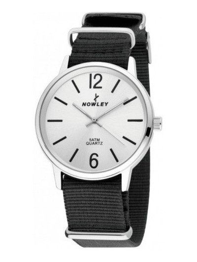 Pánské analogové hodinky NOWLEY NAVY mají mosazné pouzdro stříbrné barvy a bílý ciferník, minerální sklo a tmavě šedý textilní řemínek. Quartz strojek hodinek pohání baterie. Rozměry hodinek jsou 40,2 x 40,2 x 9,1 mm a vodotěsnost 5 ATM. Funkce: Hodiny, minuty, sekundy. Hodinky mají kvalitní čitelný ciferník s dobře viditelnými ručkami. Vodotěsnost hodinek 50M umožňuje i povrchové plavání ve vodě.