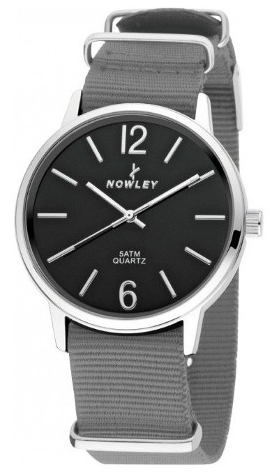 Pánské analogové hodinky NOWLEY NAVY mají mosazné pouzdro stříbrné barvy a černý ciferník, minerální sklo a šedý textilní řemínek. Quartz strojek hodinek pohání baterie. Rozměry hodinek jsou 40,2 x 40,2 x 9,1 mm a vodotěsnost 5 ATM. Funkce: Hodiny, minuty, sekundy. Hodinky mají kvalitní čitelný ciferník s dobře viditelnými ručkami. Vodotěsnost hodinek 50M umožňuje i povrchové plavání ve vodě.