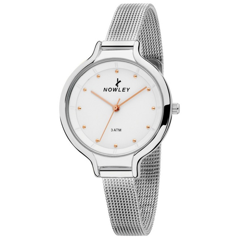 Dámské analogové hodinky NOWLEY CHIC mají mosazné pouzdro, minerální sklo a ocelový řemínek. Quartz strojek hodinek pohání baterie. Průměr hodinek je 34 mm, a vodotěsnost 3 ATM. Funkce: Hodiny, minuty, sekundy.