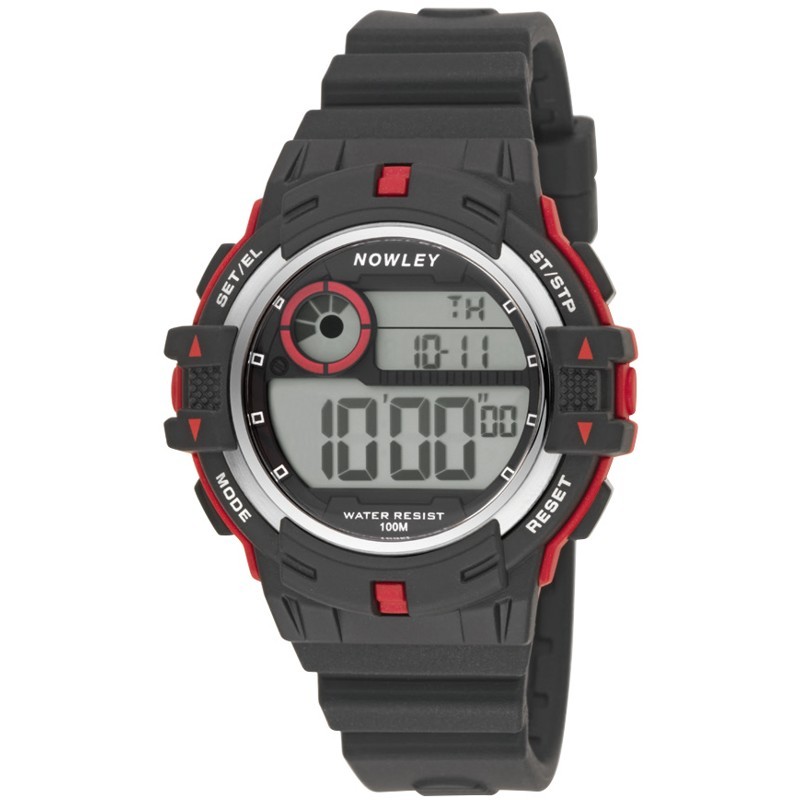 Pánské digitální hodinky NOWLEY Racing digital mají plastové pouzdro , minerální sklo a plastový řemínek. Hodinky mají stopky, budík, osvětlení. Strojek hodinek pohání baterie. Rozměry hodinek jsou 50 x 54 x 17 mm a vodotěsnost 10 ATM.