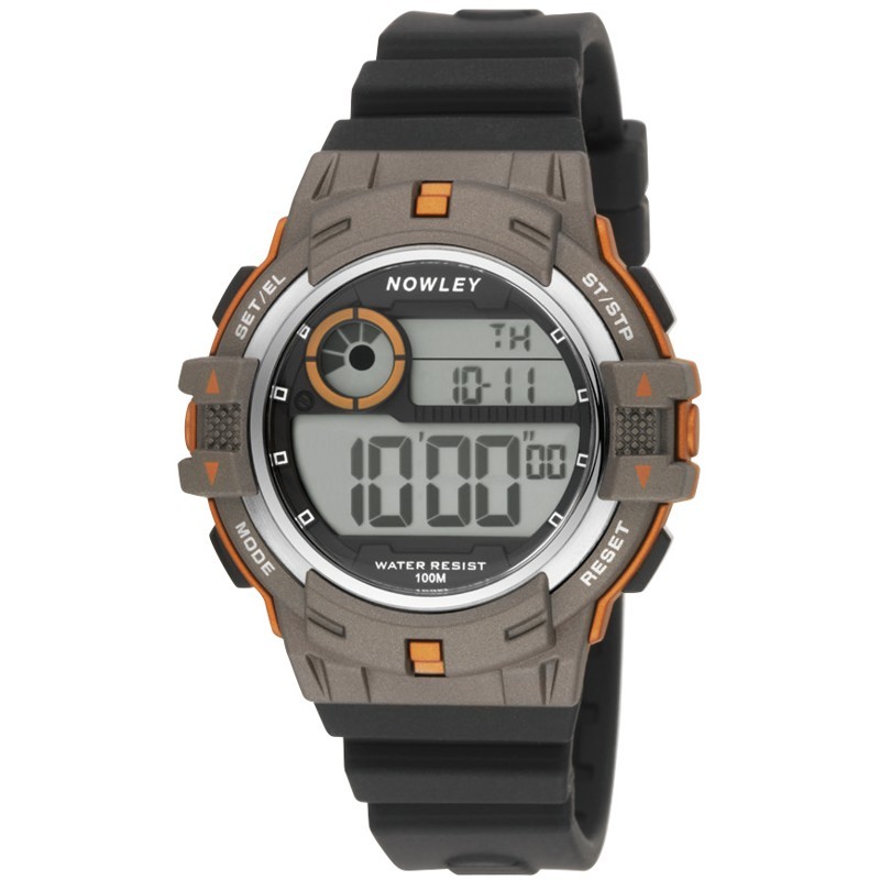 Pánské digitální hodinky NOWLEY Racing digital mají plastové pouzdro , minerální sklo a plastový řemínek. Hodinky mají stopky, budík, osvětlení. Strojek hodinek pohání baterie. Rozměry hodinek jsou 50 x 54 x 17 mm a vodotěsnost 10 ATM.