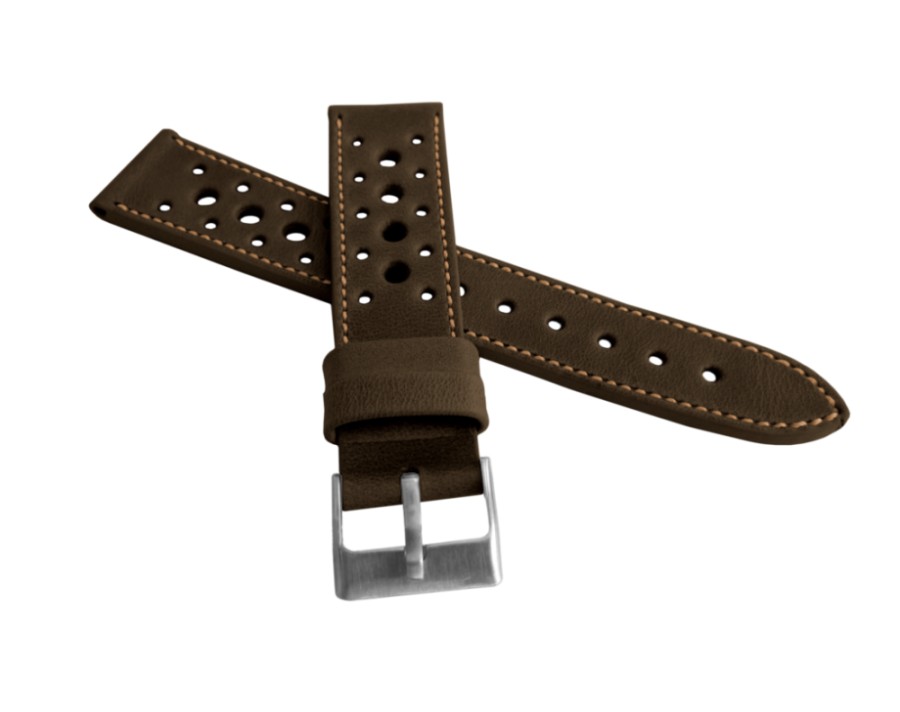 LAVVU LSGUC22 - Perforovaný tmavě hnědý prošitý řemínek LAVVU VINTAGE z luxusní kůže Top Grain - 22
