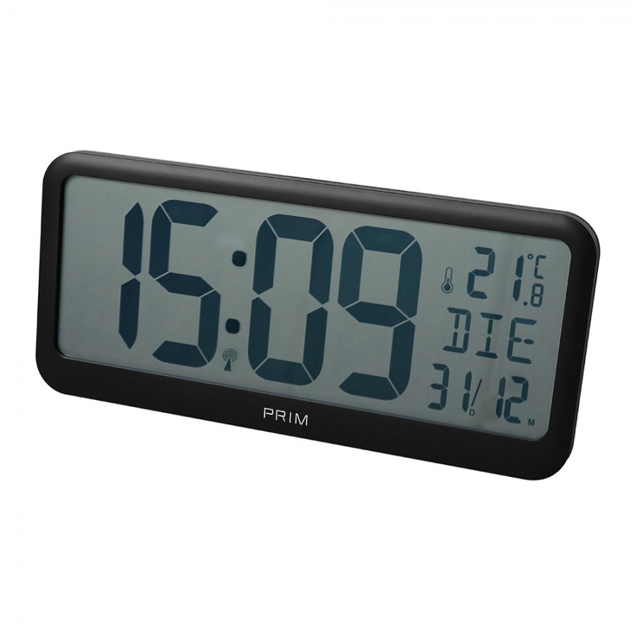 Rádiem řízené multifunkční nástěnné digitální hodiny PRIM Radio Nika s teploměrem a alarmem. Díky zacvakovacím opěrným nožkám lze hodiny umístit také na noční stolek a vzápětí mohou posloužit i jako budík.