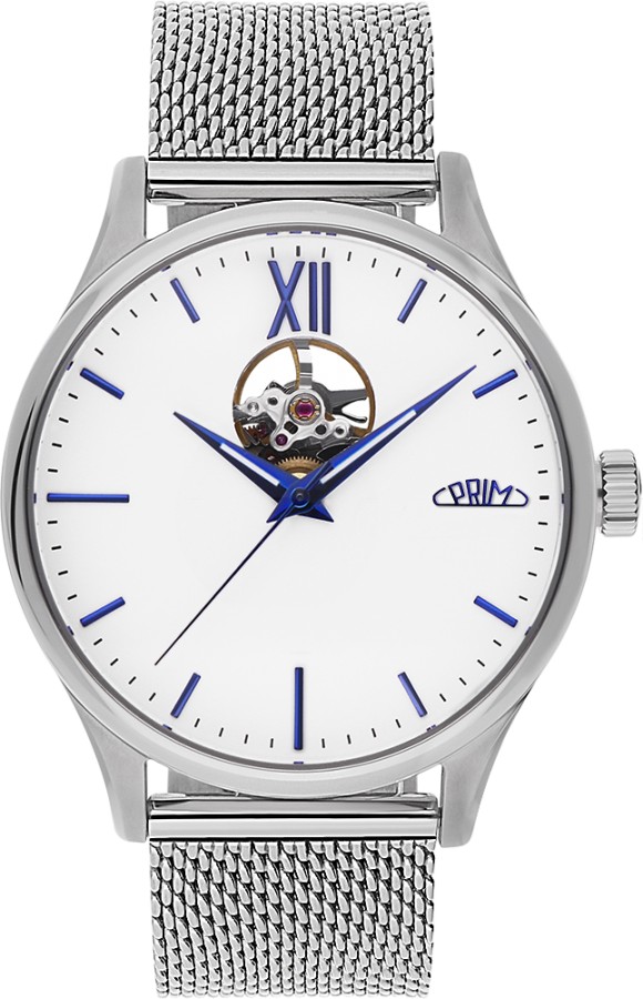 Pánské luxusní hodinky PRIM Primátor II ve speciální sérii 80 kusů. Po úspěšné edici byla příprava nové elegantní edice na pořadu dne. Exkluzivní hodinky inspirované klasickým a moderním designem s netradičním průzorem v horní části ciferníku. Náš grafický tým se nechal inspirovat čistým minimalistickým designem. Připravili jsme pro Vás tento model ve čtyřech moderních barevných kombinacích – zlatá, stříbrná, stříbrnomodrá a černá. Edice stvořená pro opravdové gentlemany.