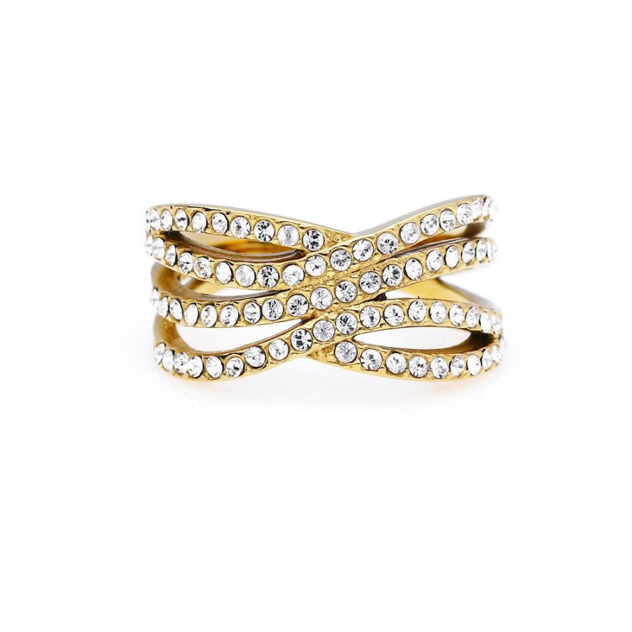 Stylový a elegantní prsten z chirurgické oceli. Moderní trojité propletení s zirkony zaujme na každé dámské ruce.