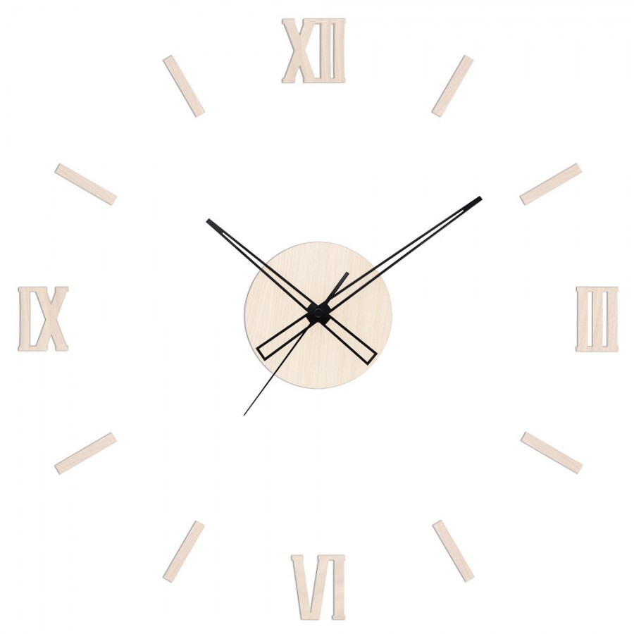 Ve spolupráci našeho grafického studia a naší výroby jsme nechali vyhotovit stále populárnější nalepovací nástěnné hodiny značky PRIM, pro které jsme netradičně zvolili vyřezávané římské číslice a indexy v barvách ořechu, dubu a jasanu. Odhlehčený design hodin působí moderním a čistým dojmem, díky kterému skvěle padnou do každého interiéru. Hodiny jsou vybaveny quarzovým strojkem, který je napájen 1 ks tužkové baterie AA.