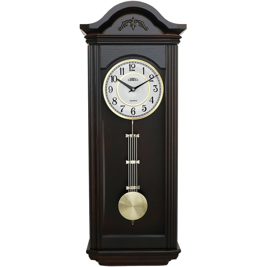 Dřevěné nástěnné hodiny PRIM v retro stylu s kyvadlem.