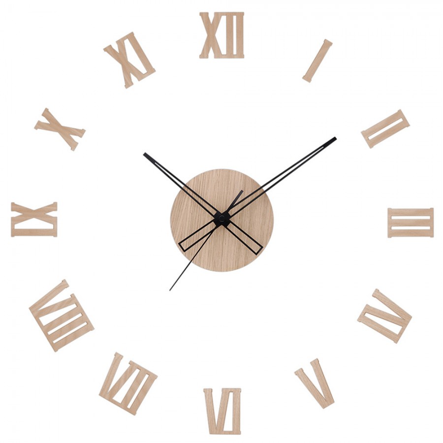 Ve spolupráci našeho grafického studia a naší výroby jsme nechali vyhotovit stále populárnější nalepovací nástěnné hodiny značky PRIM, pro které jsme netradičně zvolili vyřezávané římské číslice v barvách ořechu, dubu a jasanu. Odhlehčený design hodin působí moderním a čistým dojmem, díky kterému skvěle padnou do každého interiéru. Hodiny jsou vybaveny quarzovým strojkem, který je napájen 1 ks tužkové baterie AA.