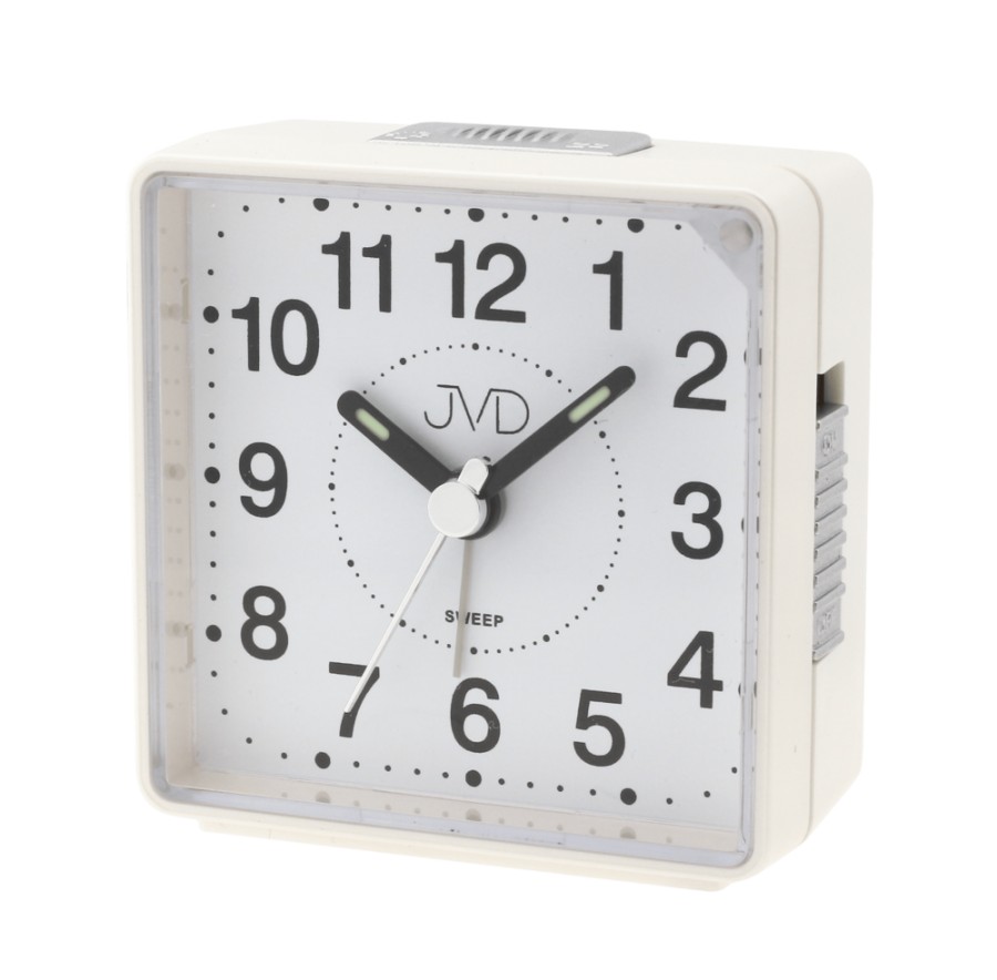 Nový budík s jednoduchým hranatým designem. Mezi jeho výhody