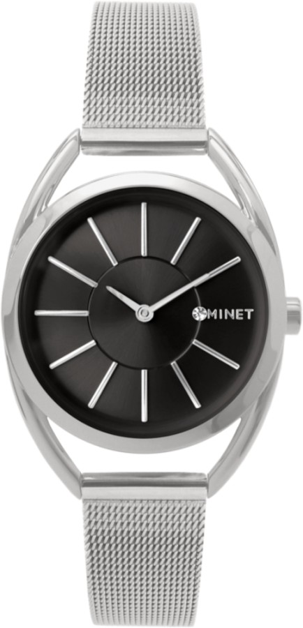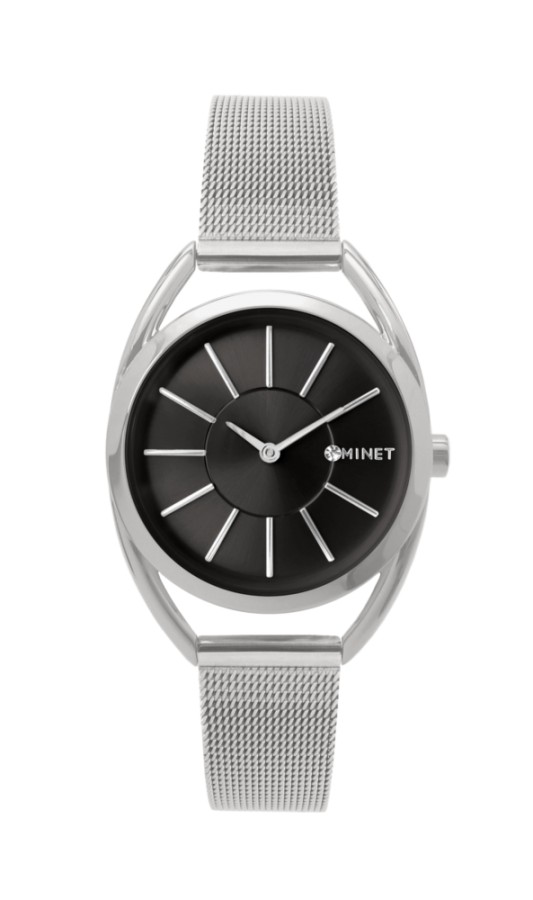Stříbrno-černé dámské hodinky MINET ICON SILVER BLACK MESH