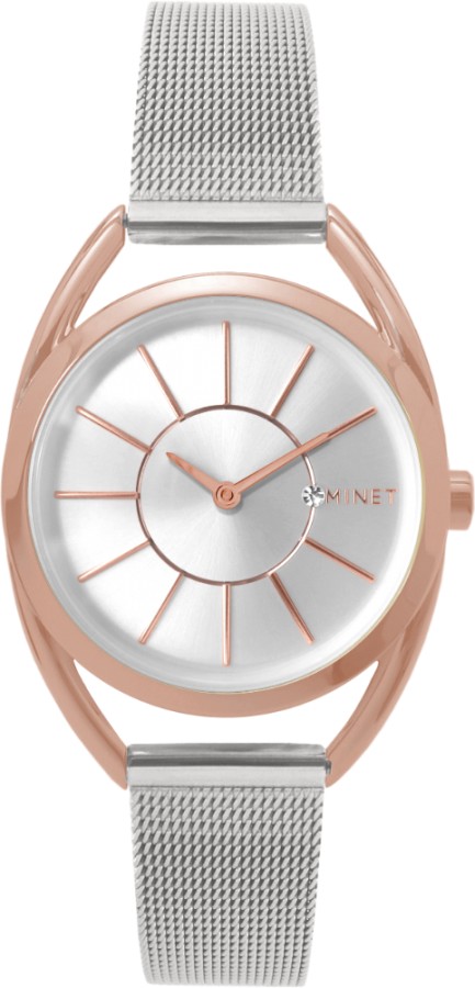 MINET MWL5019 - Stříbrno-růžové dámské hodinky MINET ICON SEMI ROSE GOLD MESH